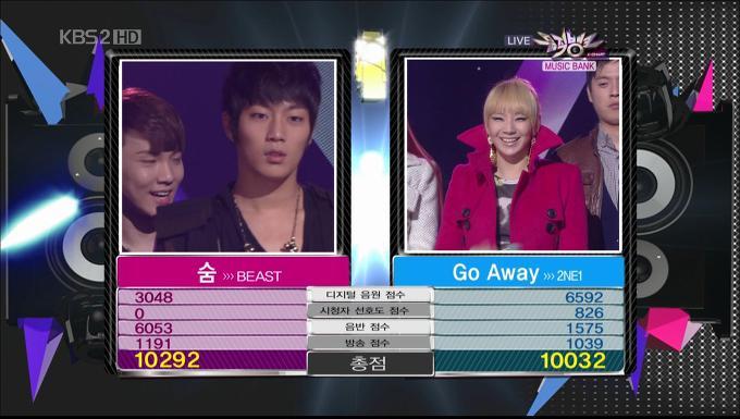 It is BEAST vs. 2ne1 this week and BEAST managed to win this week ending 2ne1's winning streak. Congratulations to BEAST on their first win for their mini album "Mastermind".