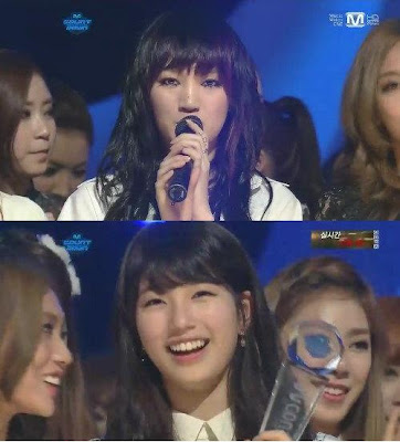 And for the highlight of the show, miss A claimed first win tonight with their latest track "Touch".