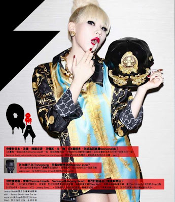Inside the mag, CL sports more Jeremy Scott amazingness—this time a scarf print silk men’s shirt with a Jeremy Scott x New Era snapback. We finally get a look at her peepers, and CL shows off killer kohl-lined lids with mile-long lashes. To see even more pics from the shoot, be sure to hit up Jeremy Scott’s Twitter or (if you know Chinese) Ketchup magazine’s official website. Get to it!