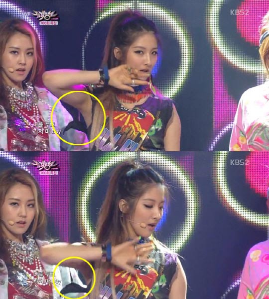 4Minute's leader Jihyun experienced a wardrobe malfunction at Music Bank aired on 17th May.