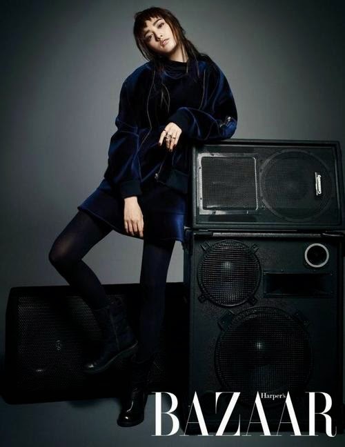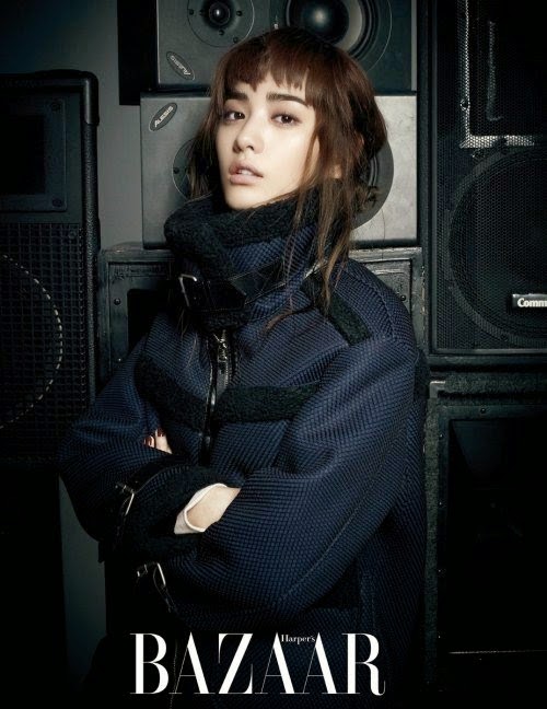 After School's Nana tries out chic and boyish poses for the October issue of Harper's Bazaar's magazine.