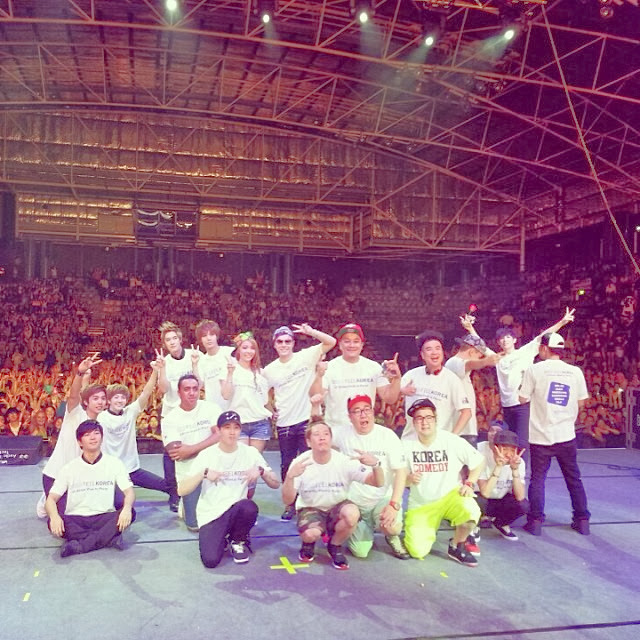 Comedian Kiseop Choi from ONGALS uploaded a group photo, "Thank you PERTH :) #MBLAQ #AILEE #ALEXANDER #WHEESUNG #ONGALS".