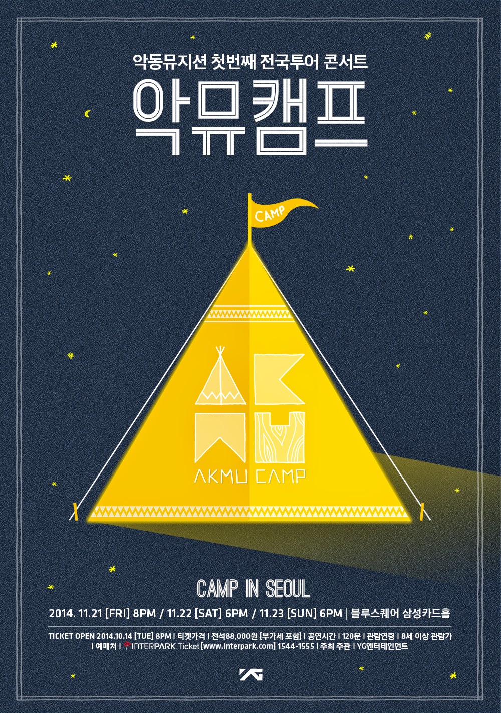 On October 9th, YG Entertainment unveiled a poster on its official blog announcing about Akdong Musician's 1st Live Tour 'AKMU CAMP'. The live tour will be held for 3 days from November 21st to 23rd at Blue Square Samsung Card Hall in Hannam-dong, Seoul.