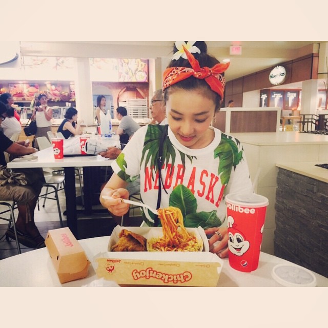Dara makes sure to wear the perfect outfit and enjoy the sun as we see her selfie along the beach wearing beautiful maxi dress and summer hat. She also fascinates her Filipino fans as she shares a photo eating at Jollibee.