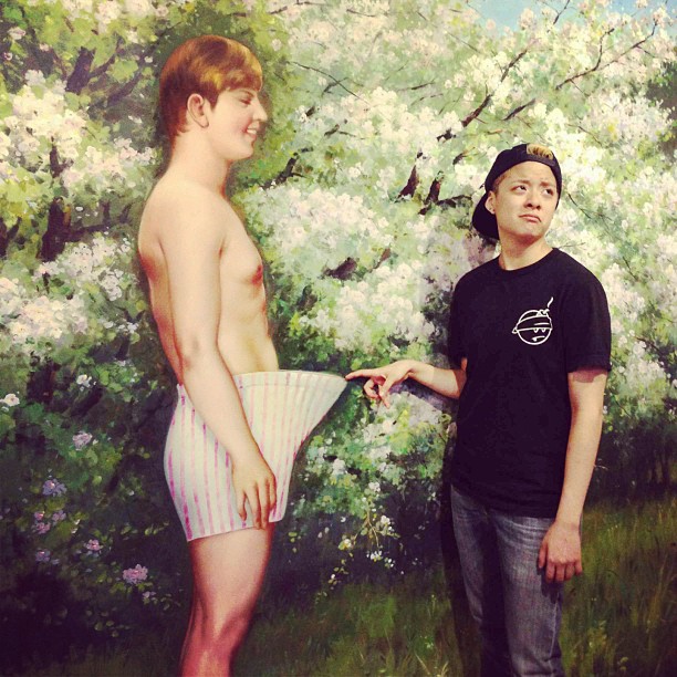 Amber evokes laughter when she uploaded a photo of her peeking into a man's boxer. With a perfect 'disgusting' facial expression, f(x) dorky member completed a real 'pervy' shot. What do you think?