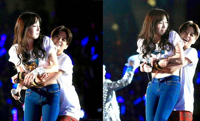 During their performance at the 2015 SMTown in Taiwan, Amber gives Taeyeon a huge back hug during their performance. Taeyeon is featured in Amber's solo track 'Shake That Brass' and they have been close with each other for quite some time, so this is not the first time for Taeyeon to receive such a huge gift from Amber.