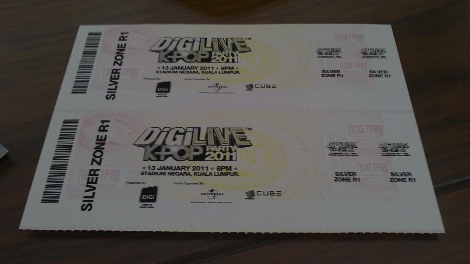 Attention Malaysian fans,BEAST,4Minute and G.Na will arrive in KL for the 2011 DIGI LIVE KPOP Party,we have received the tickets to attend the event,hope to see you there guys,here are some photos of the tickets!