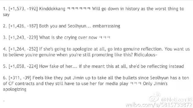 However, although they have apologized sincerely, but based on the comments below, the K-Netizens weren't felt sorry or touched at all, moreover it seems like they just don't buying it at all, the worst part is that they continued to launch their harsh criticism on the members especially Jimin, nationwide via various well-known Korean News sites and portals such as Daum, Nate and Naver.