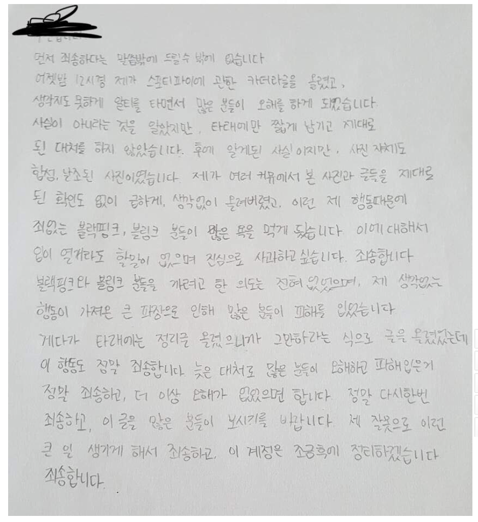 Pann: Official apology by BTS fan who wrote Blackpink rumors