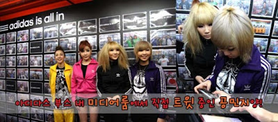 Sandara Park gave a cute message and cheer for the World Athletics Championship, as Gong Minji tried her hand at the shot put, followed by a media photo time. After the photo time ended, 2NE1 members sent tweets to Adidas Twitter Followers directly, asking for their comments and feedback, while Gong Minji directly tweeted using her own fan account.