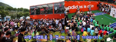 When it was announced that 2NE1 would be visiting at 5:00PM, many people from different ages, including a lot of high school students and even an old grandpa, went to the Adidas booth early to catch them. While waiting for 2NE1, a lot of pre-event activities were held to entertain everybody, including a photo session and games, where the winners would get their prizes directly from 2NE1.
