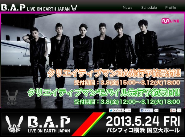 B.A.P will hold their live concert, “B.A.P LIVE ON EARTH JAPAN” for the first time at the Pacifico Yokohama National Convention Hall in Kanagawa on May 24. They plan to do even more exciting things even prior to their Japanese debut.