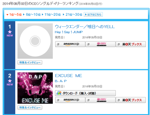 B.A.P's 'Excuse Me' # 2 on Oricon chart B.A.Ploveluy takyoSep 07, 2014 Share 0 comments B.A.P recently released their newest song 'Excuse Me,' and it landed on the 2nd rank of the Oricon daily single's chartB.A.P falls just behind Japan's very own Hey! Say! Jump!. written by: loveluytakyo@dkpopnews.netSOURCE: ORICON Tags: B.a.p, Excuse me, Oricon Share Previous articleNext article Leave a comment Name Email Content Post comment