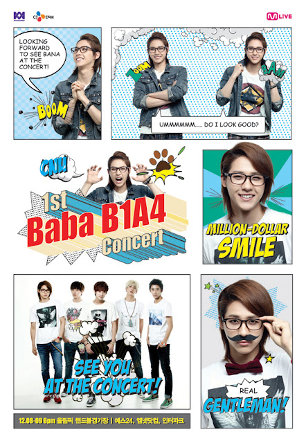B1A4 releases 1st concert posters b1a4DKPOPNEWS OfficialOct 16, 2012 Share 0 comments B1A4 releases the promotional posters of their 1st ever concert "BABA B1A4 concert",check out the comic style individual posters below.Like the posters? Tags: B1a4, Kpop, Picture Share Previous articleNext article Leave a comment Name Email Content Post comment