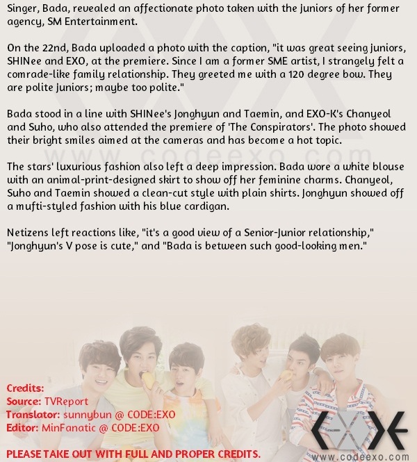Bada poses with EXO-K & SHINee! badaangelclowie18Aug 27, 2012 Share 0 comments Tags: Bada, Exo, Exo-k, News, Shinee Share Previous articleNext article Leave a comment Name Email Content Post comment