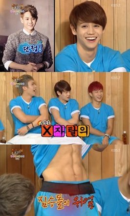 BEAST’s Yang Yoseob revealed his abs on the July 25th episode of Happy Together 3.
