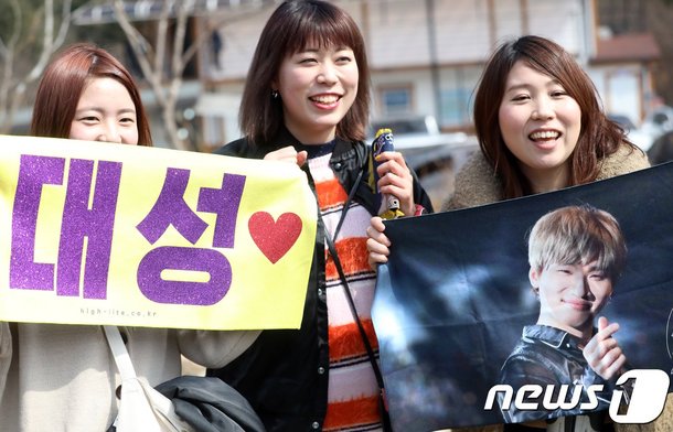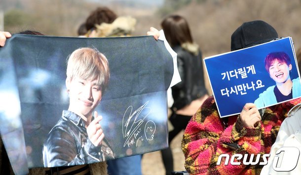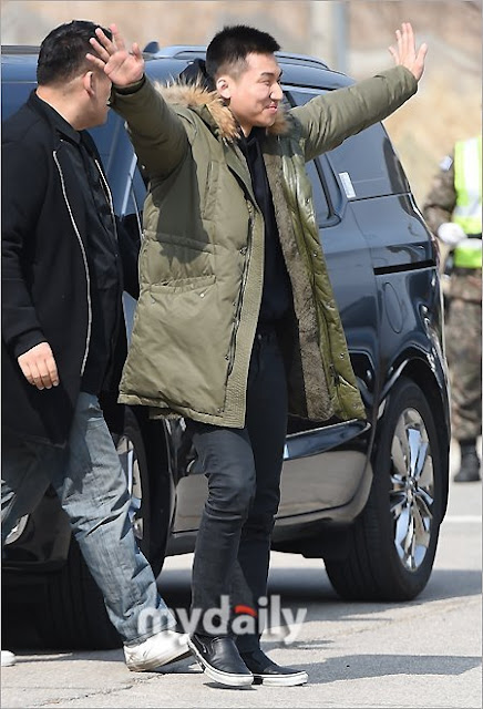 Hundreds of fans appeared outside the camp to bid a final farewell to Daesung. Daesung who shaved his head greeted fans with all smile before entering the camp.
