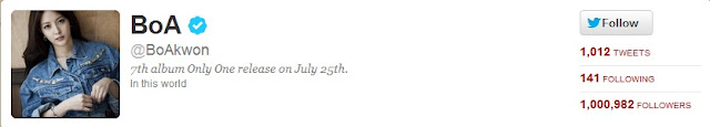 As of August 22nd 9:00PM KST, BoA’s Twitter account showed that a total of 1,000,982 fans are following the star, most of whom are committed fans curious about the singer’s daily life.