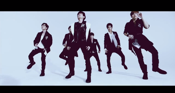 The boys showcase their flawless formation and cool dance moves in their newest song. They are wearing black and white outfits and make up showing their manly charisma.