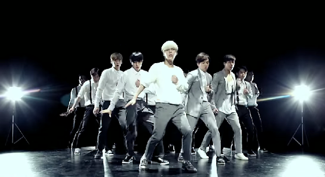 The boys looking so fine in white long sleeves and gray suits do their flawless and smooth dance steps. The sensitive and emotional dancing perfectly in-sync with their song.