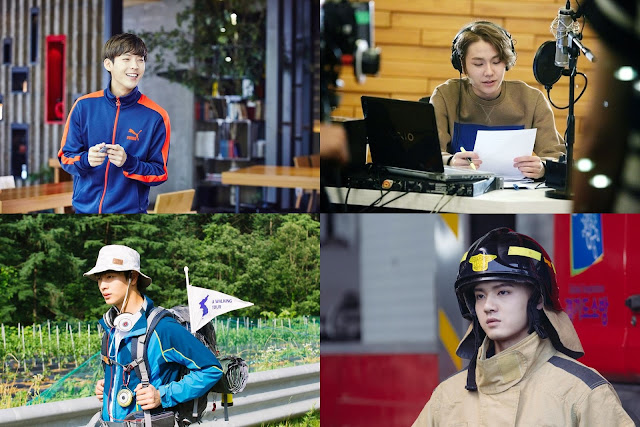 Based from the photos, the boys are taking on various roles such as radio DJ, tour guide, librarian, delivery guy, painter, and more. The atmosphere gives off a casual day each members' role has to play.