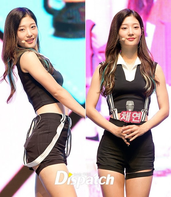 Chaeyeon attracts as the group's center and impresses with her sexy figure in their black outfits especially during the 'suspender butt dance'. See photos below: