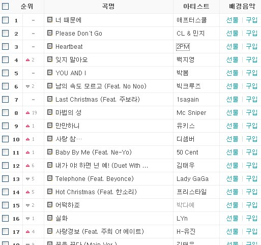 The screenshots of the charts are taken today @ 5.30 KST, 4.30 + 8 GMT, 30/11/09