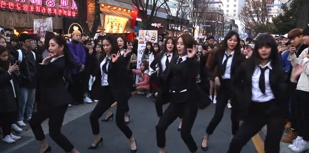 Just imagine when your favorite idols appear out of a sudden to dance with you! Well this happened to a dance cover team in Hongdae on 11th March. CLC members were hiding among the crowd at first, during the chorus of the performance, the girls came out and danced together with the dance team.
