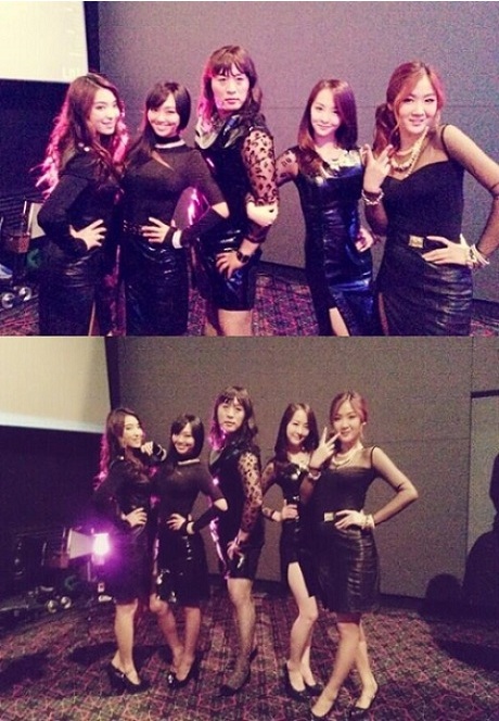 Attached the post was a photo of the comedian himself posing with four SISTAR members and dressed up in the group’s trademark sexy black attire during “Alone” promotions.