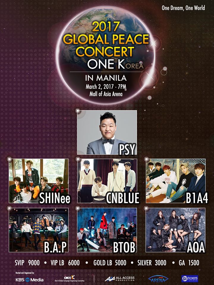 The hottest and trendiest K-pop groups are gracing the '2017 One K Global Peace Concert in Manila" which is happening on March 2, Thursday at 7PM in SM Mall of Asia Arena.