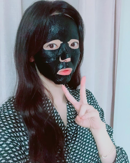 She uploads a photo of herself applying a mask on her face. She shares that it's important to have perfect skin.