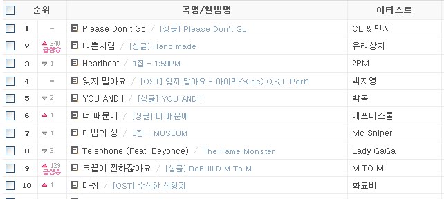 2NE1's CL & Minzy's duet single Please dont go is high up on the charts in Korea !Their song is still going strong.Charts ranking are updated today @ 6.50 PM +8GST, 7.50 PM KST for this post.