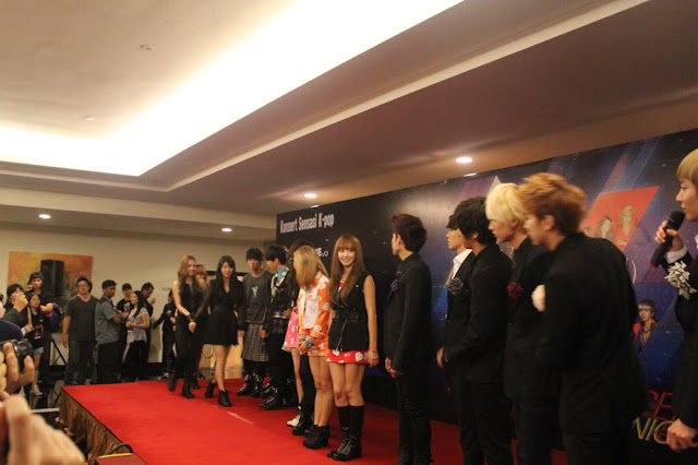 Members of popular KPop group Super Junior,f(x),B1A4 and Miss A attended the press conference to meet the local medias and some lucky fans.