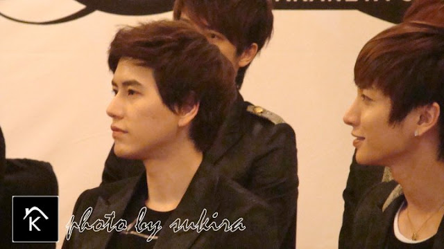 A media man ask, "Do you still feel stage fright?", Lee Teuk gave the mic to Siwon and he answered it in English "We all pray to God (before we do the show)". Such a religious man! Suddenly i notice Hyukjae coughing, we all know that he is not feeling well right? But he still attended the last stop of Super Show.