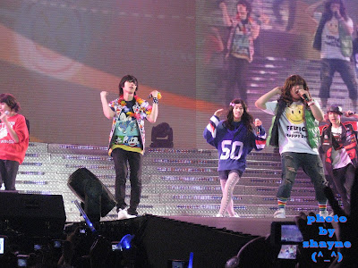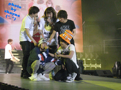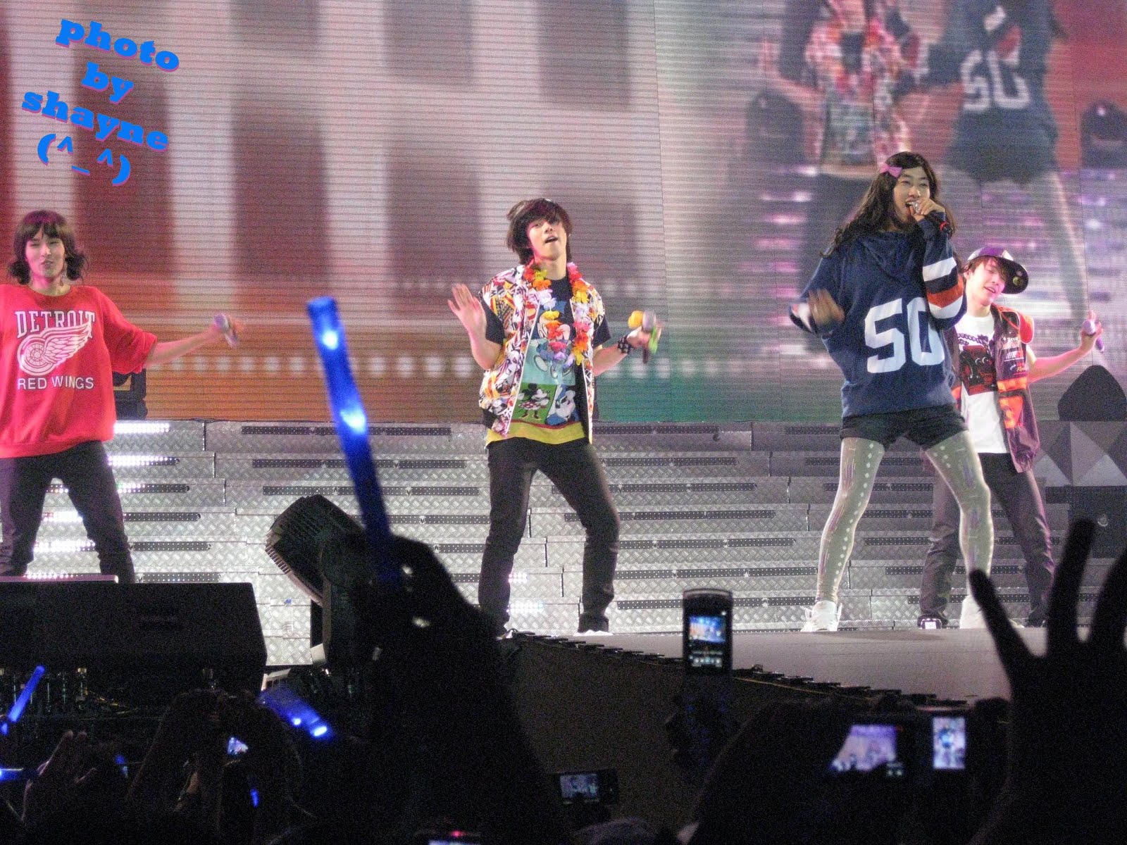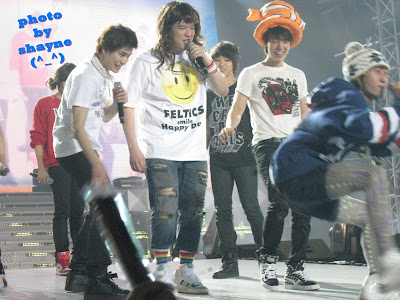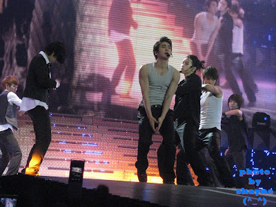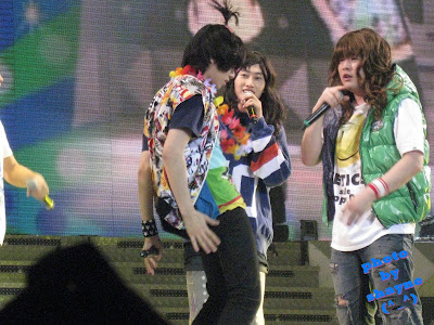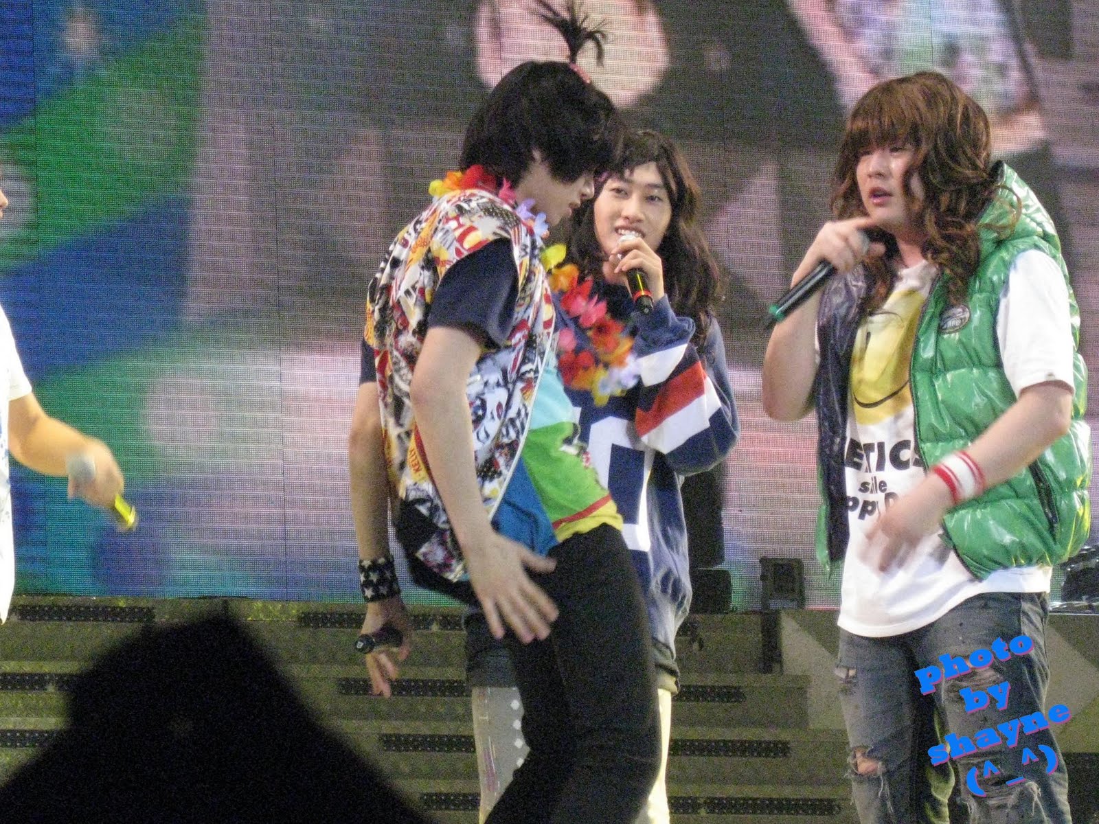 Super Junior introduce themselves one by one with their wacky and unique gimmicks. When its already Shindong's turn, unexpectedly, he counted numbers from 1-10 using tagalog words. Also spoke "Ano ba yan!"( What is that?) and later imitated by Eunhyuk and Leeteuk. During Angela, Ryeowook, while singing his part, was carried by Sungmin.