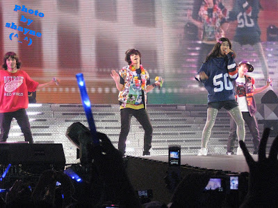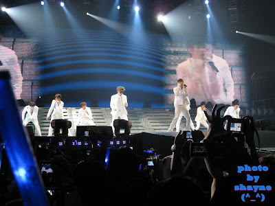 After long hours of waiting, it paid off when fans saw the members appeared in different parts of the stage, generates the start of the Super Show. Screams everywhere filled Araneta as the fangirls and fanboys cheered for the members they like. Energy was overflowing when Super Junior started to perform Man In Love.