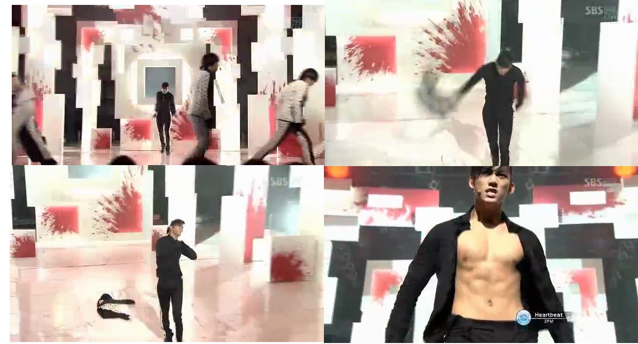 But what speeds up my heartbeat is not the awards,it is the ending part of the performance,usually woo Young or Junho will do a back flip before the end of "Heartbeat",however Taekyeon made it special today,guess what did he do??He tears his shirt off at the very end,i can hear fangirls screaming!!