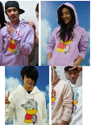 The members of MBLAQ and f(x) spotted wearing the jumpers of the same design.Luna and Seung Ho with the purple one while Amber and G.O witht he white jumper!