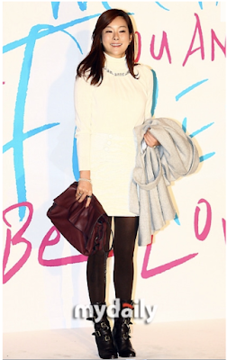 She attended the wedding as Lee Hwi Jae's guest so she was supposed to stand on Lee Hwi Jae's side (left) in the group picture. But she stood behind Lee Hwi Jae's wife for the group picture.