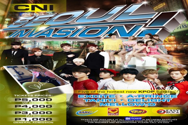 Seoul Invasion, a concert which will be held in Philippines will have not one, not two, not three but five KPOP groups including EXCITE, A-PRINCE, TAHITI, DELIGHT, MELLOW:D for a 1-day concert. This will be TAHITI's 2nd visit to Philippines after 'Dream KPOP Fantasy Concert' which was held on January 19th, 2013.