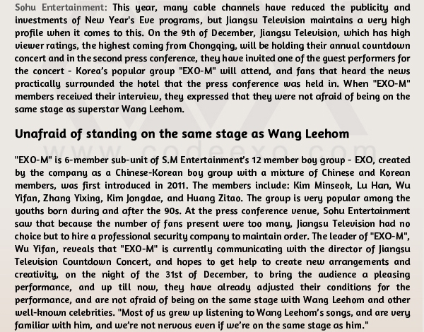 "EXO-M" popularity goes rocket-high, unafraid of being on the same stage as Wang Leehom EXOangelclowie18Dec 14, 2012 Share 0 comments Tags: Exo, Exo-m, News Share Previous articleNext article Leave a comment Name Email Content Post comment