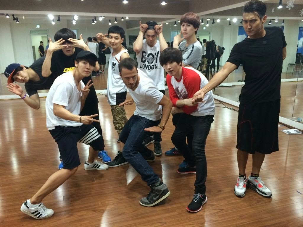 Few hours ago, the famous choreographer tweeted, "Great work gentlemen #superjunior @siwon407 @AllRiseSilver @donghae861015 @Himsenkangin @special1004 @SMTOWNGLOBAL" and attaches a photo taken with Super Junior members inside a practice room. Moreover, he also tweeted separate photos with Eunhyuk and Siwon.
