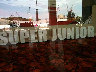 Soon, they entered the showcase carpark. I went into the mall and I saw this long queue of elfs( those going for showcase) and the mall was practically filled with elfs. We went to another side and there was a big screen playing bonamana, sorry sorry , neorago and suju's message for Singapore. There were big blocks of letters ' SUPER JUNIOR' I believe they are the ones in music bank during the sorry sorry period. All the fans were crowding there hoping to see them. I waited there from 3 o clock till 6 o clock because they said super junior was going to come out from there. In the end after 3 hours of waiting, we got chased away by the security. The elfs who are going for the showcase ran in after they were let in( over excitement). We were really hungry because we didn't eat the whole day so we went to eat. The showcase was suppose to end at 10 o clock but all of a sudden, we received phone calls at 8.40 from our friends that the showcase was over. We rushed back to the venue and yes, the elfs already came out. We waited for some time and Sj bus finally came out and I saw a guy filming inside. I guess it's y star or tvn?? They were filming us instead of them. We really hope they will stop by any restaurant to eat since it ended early than expected. To our disappointment, they went straight to the airport. I finally managed to catch a glimpse of eunhyuk........'s hat. -.-