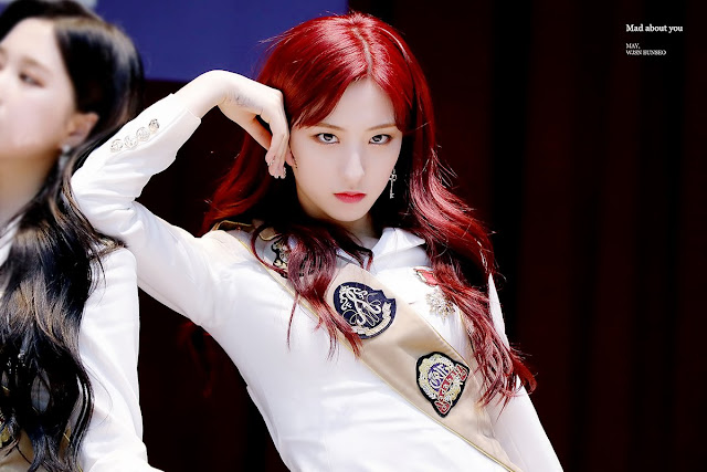 Well, she's none other than WJSN's Eunseo. Her group just made a comeback with 'Dreams Come True' on various music shows 2 weeks ago. Eunseo garners much attention with her latest hair color. Fans say that she suits red hair so much, what do you think?