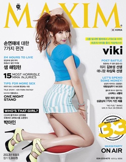 Former Dal Shabet member Viki is successfully drawing much attention for her voluminous body in her latest pictorial for June issue of ‘MAXIM Korea’.