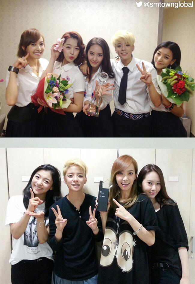 SM Entertainment also uploaded a celebratory picture with the captions, “Last week, #fx was ranked #1 in all the Korean music shows and also on the Billboard Kpop Chart. Thank you!!”, showing f(x) members posing happily with their trophies.