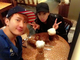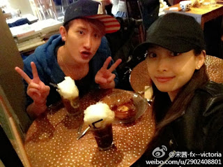 F(x) Victoria and Super Junior M's Zhou Mi show their closeness as they shared photos of them having snack on their respective weibo accounts.