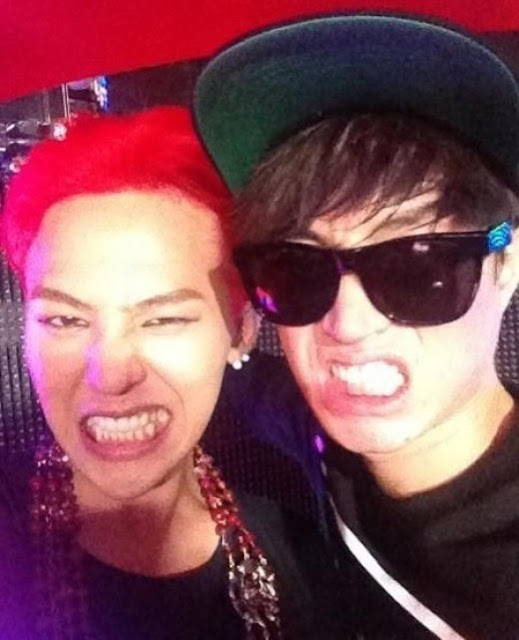 In the photo, Tablo is posing with G-Dragon, who dyed his hair red. The two stars are both scrunching up their faces and showing off their bad boy images.