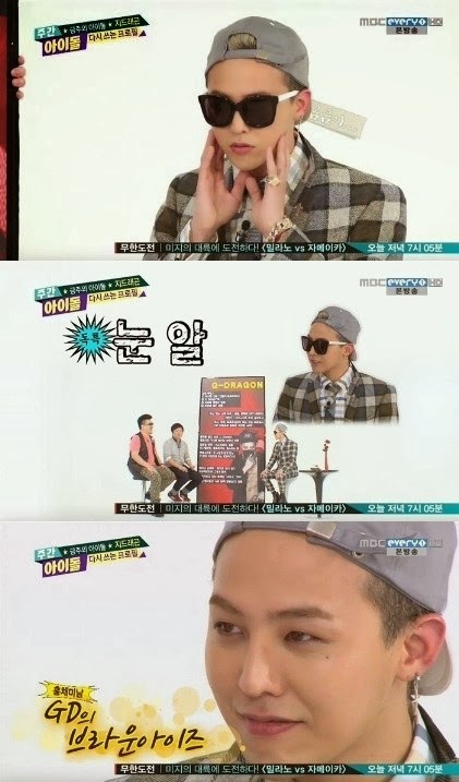 He explained,"My eyes are brown. It's originally my family eyes' color", Defcon was surprised and said,"It's not make-up effect?" and admitted,"G-Dragon' eyeballs are indeed attractive".