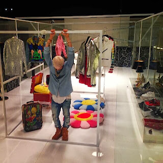 From the photos, he is seen inside a glass walled stall with various miniatures. They are also handwritten speech bubble hanging.